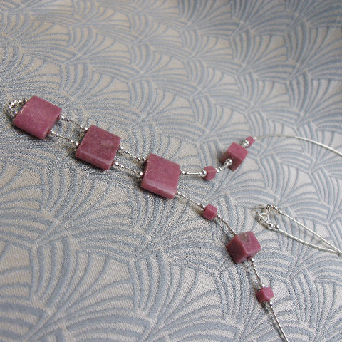 unique semi-precious bead necklace, handmade pink beaded necklace DD4