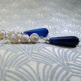 These long blue dangle earrings are a unique semi-precious handmade jewellery design with only one pair being made.