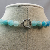 The blue agate pendant necklace finishes with blue weathered agate beads and with this blue semi-precious bead necklace I have used a toggle clasp as a fastener.